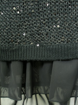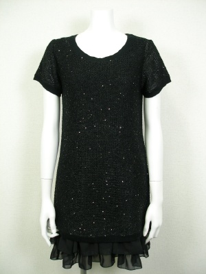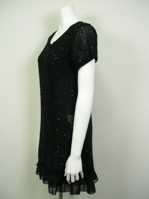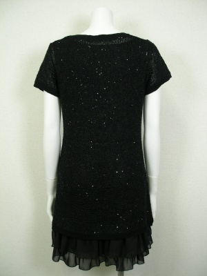 裾がシフォンのアンダードレスにスパンコールを散りばめたニットを重ねて。サイズの「着丈」はアンダードレスも含めた長さです。
