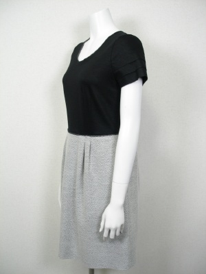 スッキリしたデザインのコンビネーションワンピース。ジャケットを羽織ってお出かけ用にも。