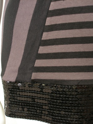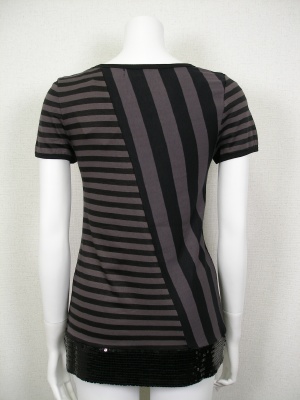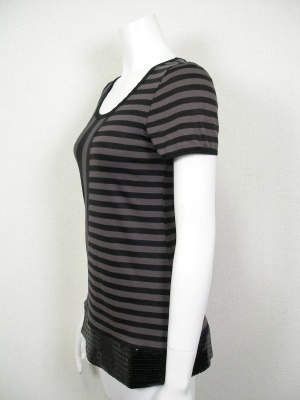「黒」は黒×チャコール、「ライトグレー」はライトグレー×オフホワイトの配色。ストレッチの効いた素材です。(スパンコール部分は伸びません)