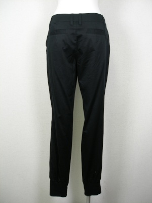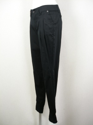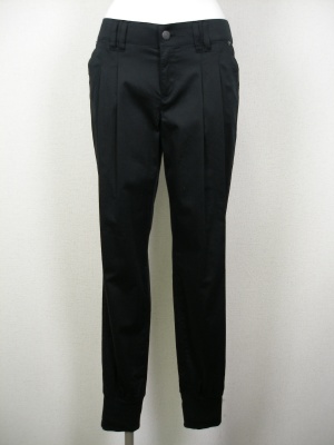 フルレングスのサルエルパンツ。ツータックのジョッパーズタイプ。裾のリブは足首にフィットします。ストレッチ素材。