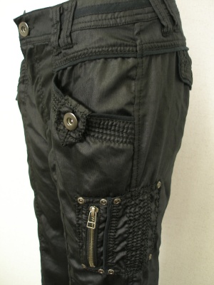 やや光沢があり、薄く柔らかい素材。膝下のフレアーは少な目のブーツカット。