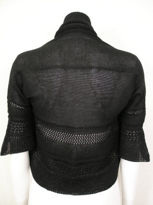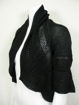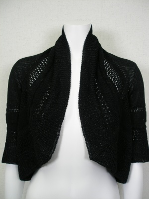 ホールガーメント(無縫製で縫い目がない)のニットボレロ。ノースリーブワンピースに合わせたい。