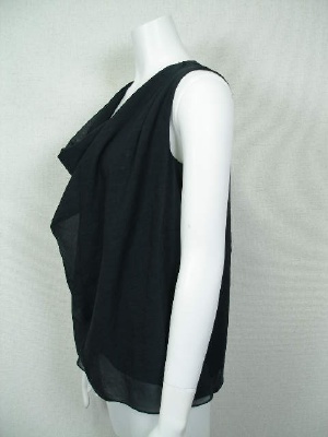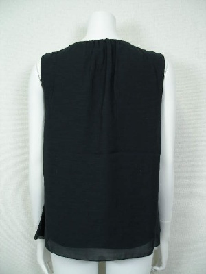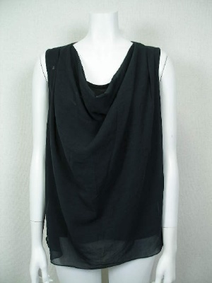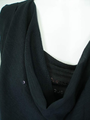 スパンコールをネックレスのように付けたリヨセル70%・綿30%のカットソーに、サラリとしたブラウス生地を重ねています。