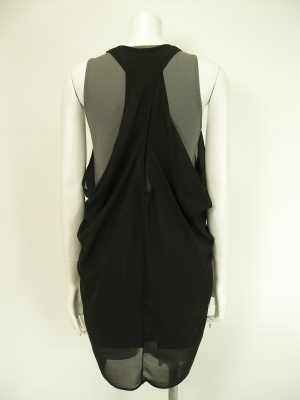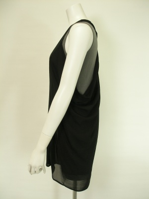 サイドから後ろにかけては透け感のあるシフォンで、ドレープたっぷりに仕上げています。