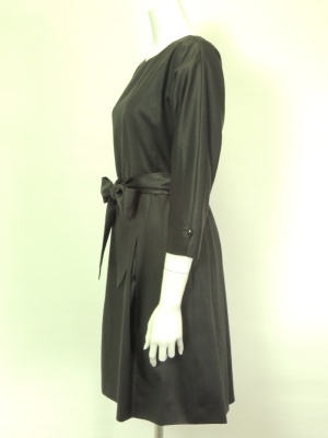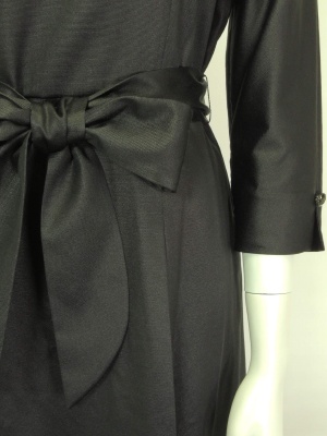 リボンでウエストマークするキチンとした表情のワンピース。