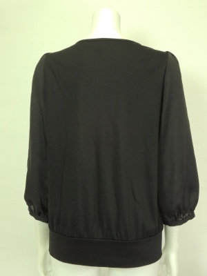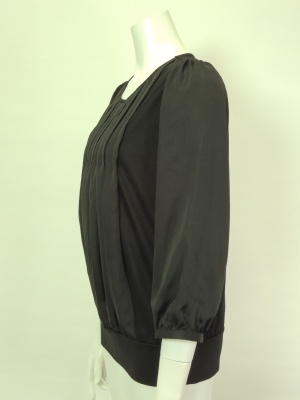 着心地の良いカットソーに異素材でフリルのようなデザインをあしらっています。
