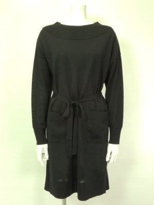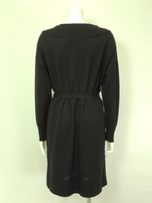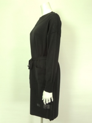 ストンとしたシルエットのニットワンピで、ベルトでウエストマークします。