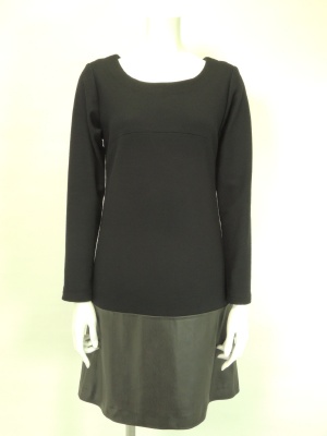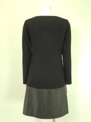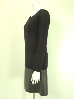 ウールジャージーとフェイクレザーの異素材MIXワンピース。