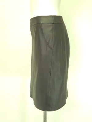 フェイクレザーのタイトスカート。