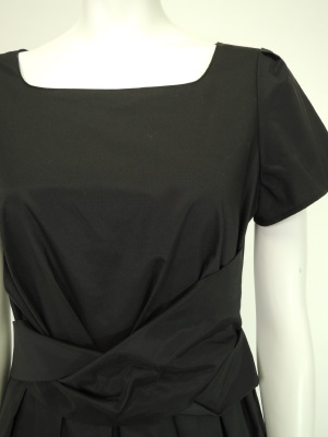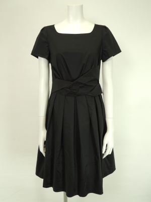 ウエストから広がるスカートのラインがフェミニンなワンピース。ややハイウエストの切り替え。裏地付き。