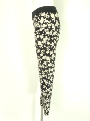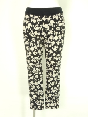 シルエットの花柄がシックな綿ストレッチのレギパン。