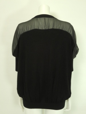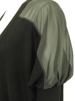 肩から袖にかけてシフォンに切り替えたドルマンカーディガン。