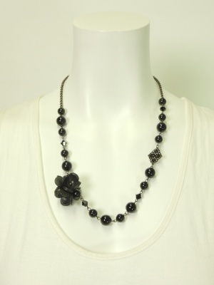 レザーのお花モチーフが可愛いネックレス。
