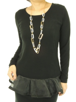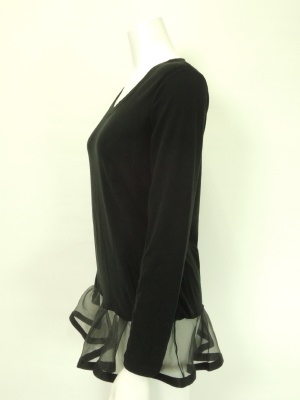 カットソー部分はやや起毛したストレッチ素材で、裾の部分はシースルーでハリがあります。(ポリエステル)