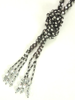 グラスビーズを編み込んだラリエット。