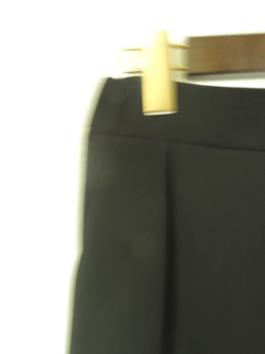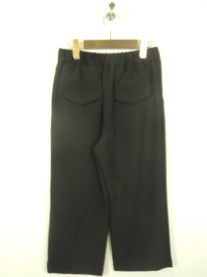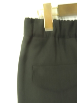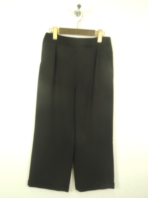 ウエスト後ろだけギャザーゴム入り、Tタックのガウチョパンツ、脇ポケット裏地なし、裾はダブル