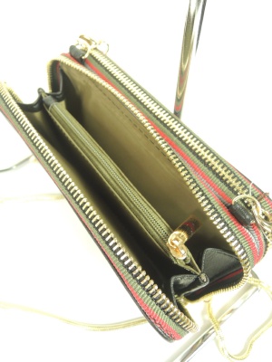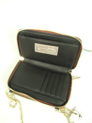 お財布タイプのバッグ、チェーンは取り外し出来ます、ファスナーで一つは財布に小銭入れも中央にあります、もう片方は カード入れとスマホなど収納可能です (スマホは機種によって使用できない場合もございます)