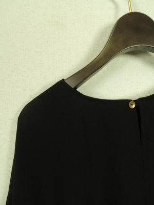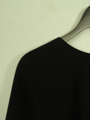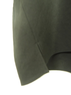 ビッグシルエット、袖口ひとつまみにしてダブル風デザインにみせてある、前上がりで、脇にスリットが入ってます