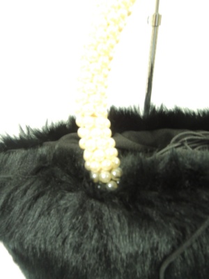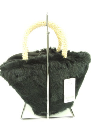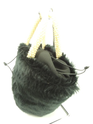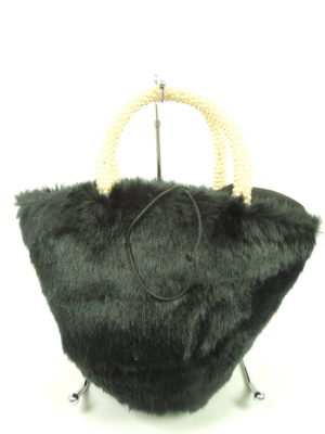 巾着型のフェイクファーバッグ 持ち手はパール