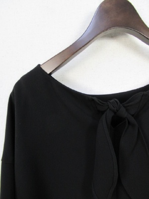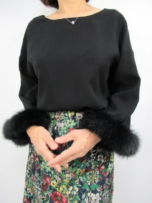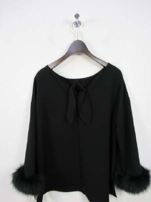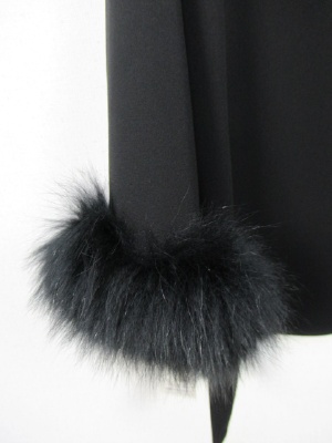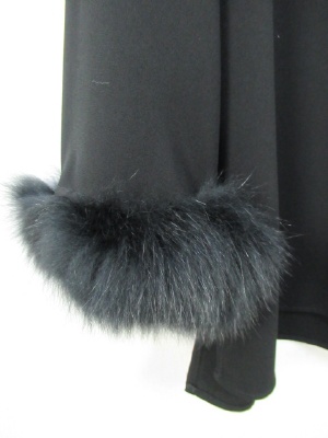 袖口に取り外し可能なフォックスファーをあしらったデザイン、やや袖口にかけて広がっています、後ろリボン、前後差、両脇スリット