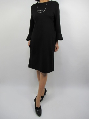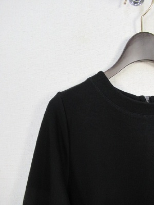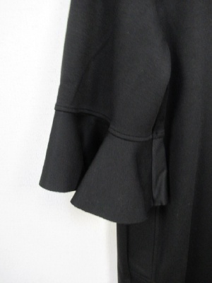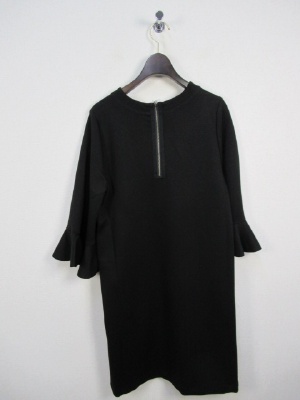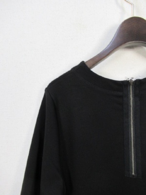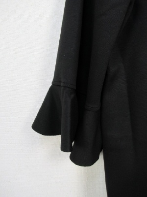 カットソーのワンピース、袖口フリル、切りっぱなし、後ろファスナー、裏なし