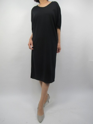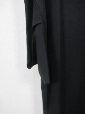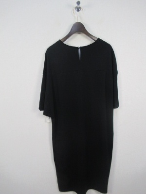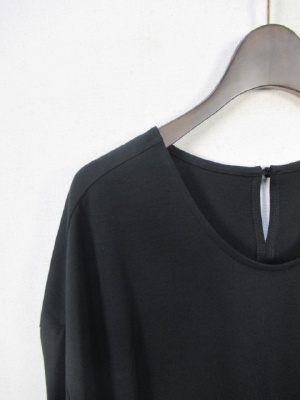変形袖のゆるシルエットのカットソーワンピース、手洗いできません、背中に切り替えがある、ネックのところにボタンあり
