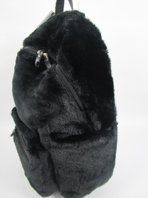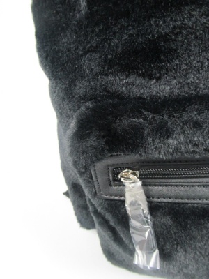 フェイクファーの大きなリュックタイプ 背の部分は合皮 肩ベルトは調整できる