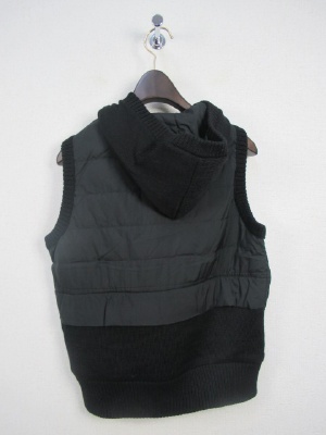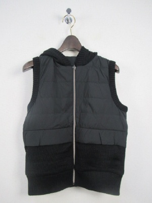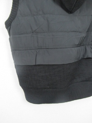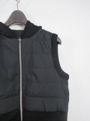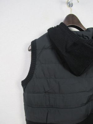 薄手のダウンベスト 裾野方はニット地 裏地あり 前ファスナー 脇ポケット フードは取り外しできません