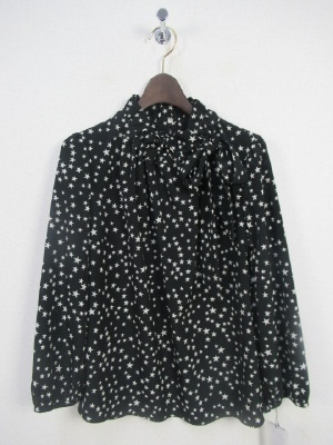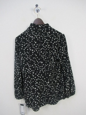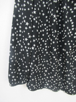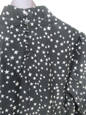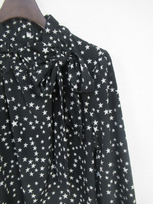 黒は☆をデザインしたブラウス ライトブラウンはストライプ柄 ネックはリボンでしぼりが出来そのまま前でリボン結び 後ろにボタン 横に着脱のファスナーあり