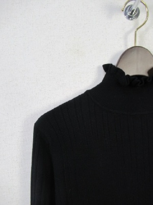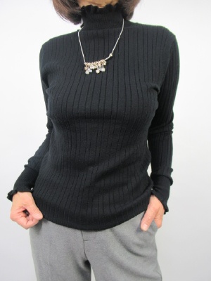 ハイネック ワイドリブ 襟と袖口フリル仕上げ 手洗い可能