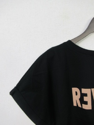 ゆるシルエット ロゴT 袖口は折り返し やや前上がり 白・・・オレンジ グレー・・グリーン くろ・・ベージュそれぞれのロゴの色です