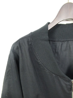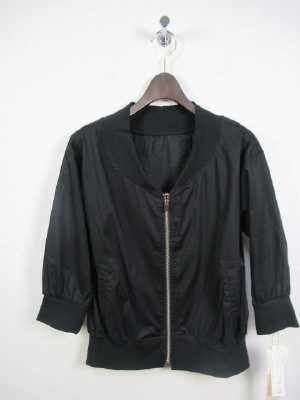 七分袖 襟はやや広く開いたデザイン 袖と襟 裾はリブニット ファスナーはシルバー ポケット有り 手洗い可能
