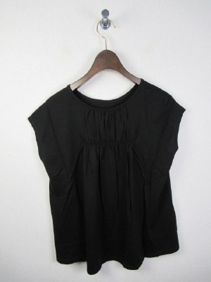 背中の中央でギャザー寄せデザイン ナイロン混で落ち感の生地でキレイ目 手洗い可能