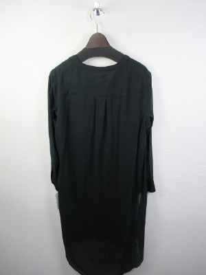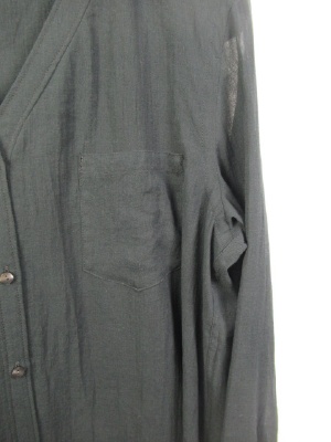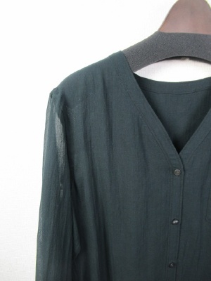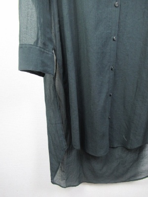 ロング丈のシャツブラウス Vネック 深めに入った脇にスリットは 前上がりデザイン 手洗いOK