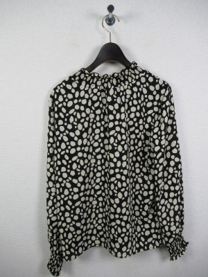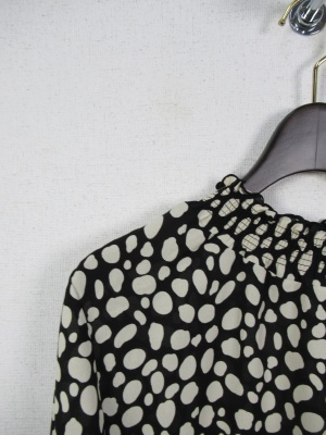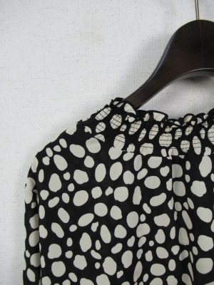 ダルメシアンプリント、首と袖口がシャーリングゴム、手洗い可能