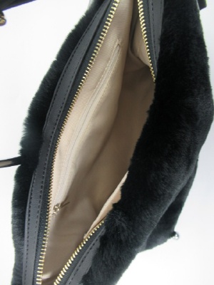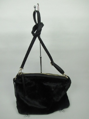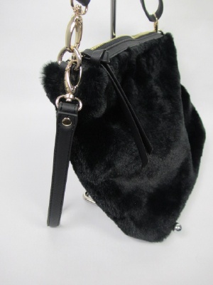 フェイクファー 厚みのない天ファスナー 片方に片手持ちのストラップあり ショルダー どちらも取り外しできる
