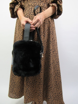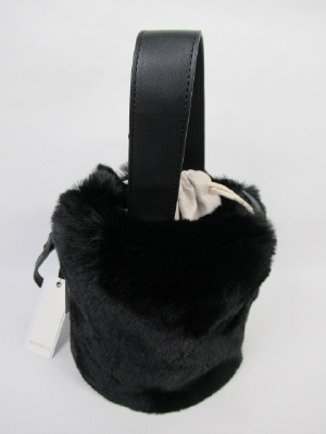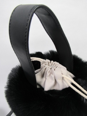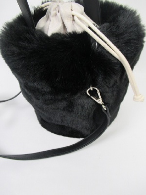 バケツ型 一本手 ショルダー取り外し 巾着型、同じフェイクファーですが口元は毛足長い