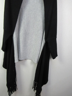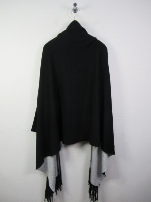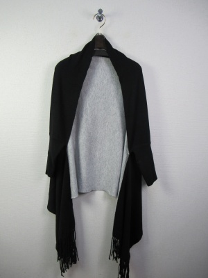 袖付きストール風ケープ リバーシブル ダークブラウンとグリーンはうらがベージュ 黒はグレーです シルバーのピンブローチ付きです