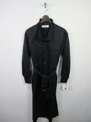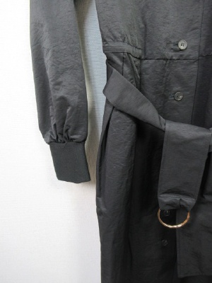 羽織にもなるワンピース(前ボタン)、共のベルト付きデザイン、袖口はリブ、ウェスト部分の内側に調節できる紐あり