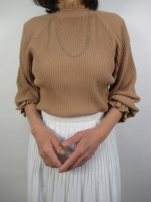 リブデザイン 袖筒やや広め 襟と袖フリル 手洗い可能