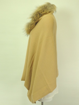 すっぽりかぶってホックを留めればケープ風、ホックを外すとポンチョ風、腕を通せばカーディガンのようです。