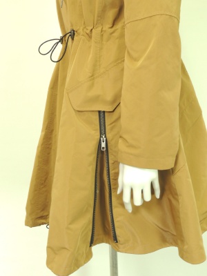 絞ったウエストから裾に向かって大きく広がるコート。