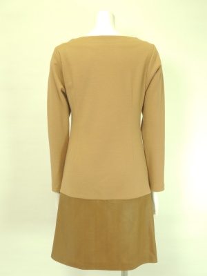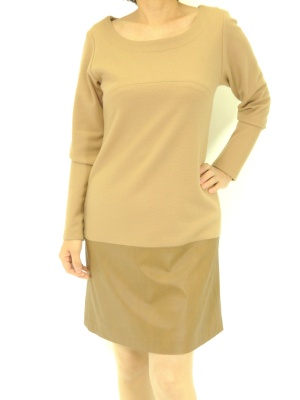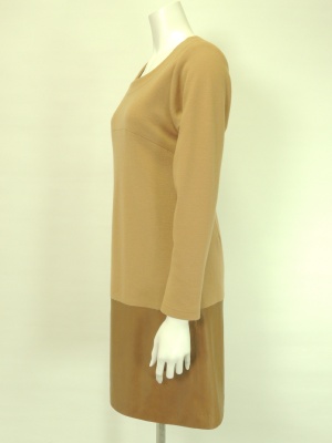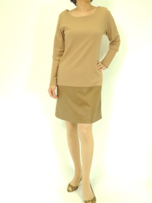 ウールジャージーとフェイクレザーの異素材MIXワンピース。