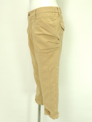 ポケットのタックや無造作な感じのロールアップがポイントのテーパードパンツ。