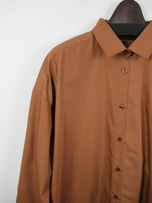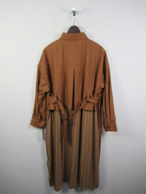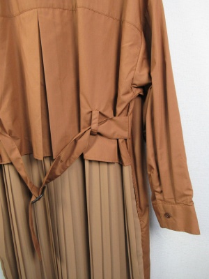 シャツタイプの羽織、前開き、後ろ途中切り替えでプリーツ(異素材)デザイン