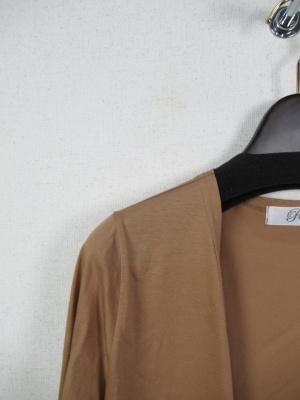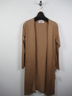 カットソー生地の着流しカーデ、張りポケット、両脇スリット(スリットの長さが約19p)、手洗い可能