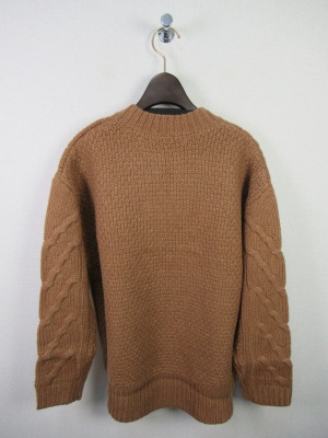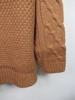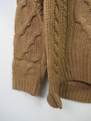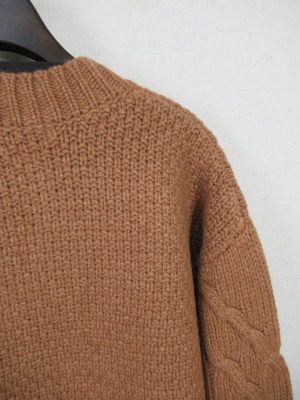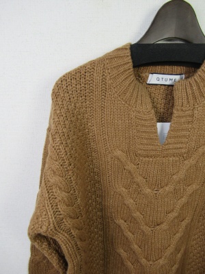 Vネックのような胸元スリット ケーブル編み 中細ニット 前上がり