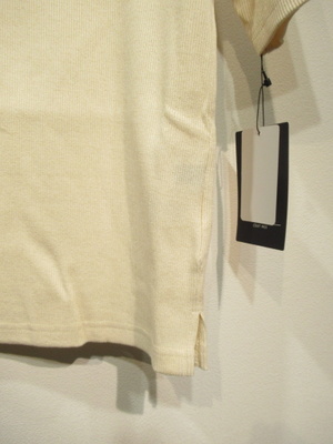 ボートネックに近い横に広めのネック 半袖 細かいラメ入りのテレコ素材 ワイ裾スリット入り 手洗い可能