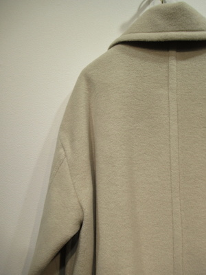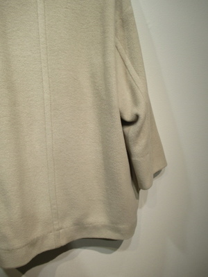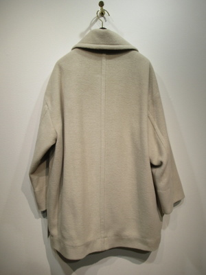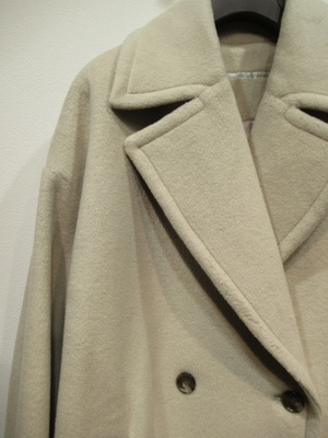 ウール見えするポリエステルレーヨン生地 テーラード襟のダブルボタン ドロップショルダーのビックシルエット 裏地付き 手洗い可能