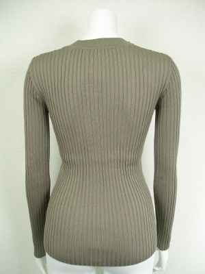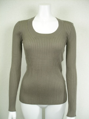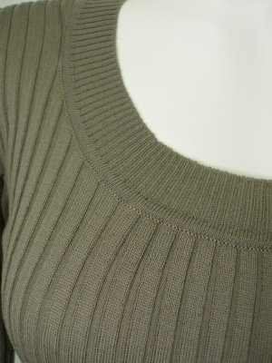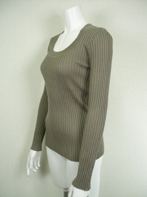 かがんでも胸元が開かず安心なラウンドネックリブニット。手洗いしても縮みにくく、毛玉ができにくいトリートメント加工を施してあります。